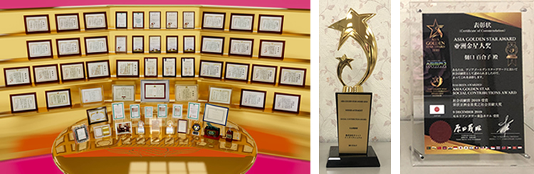 受賞歴 ASIA GOLDEN STAR AWARD 2019 社会貢献賞を受賞 (株)サミットインターナショナル 樋口百合子前社長がASIA GOLDEN STAR AWARD 2019 社会貢献賞を受賞しました。この賞は、アジア18ヵ国から参加するアジアで優れた「企業、人、モノ、サービス」と認められた場合に受賞されます。さまざまな社会貢献・ボランティア活動が認められ受賞いたしました。 社会貢献トップへ