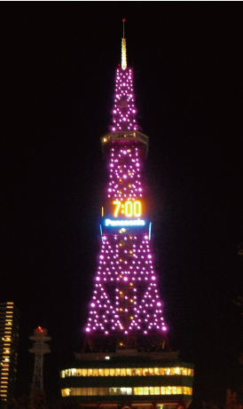 ピンクのイルミネーションになった札幌のシンボル・テレビ塔。