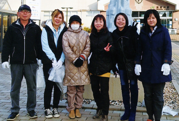 平素より業務セミナーで使用している会場周辺の清掃をしたのは、ルセルドール(竹村EGSA)、セイム・クリエイト(川越EGSA)、レムリア(南SAG)、ライトユーインターナショナル(長岡SAG)、プリンスローズ(塩入SAG)さんとファミリーの皆さんです。奉仕活動後に笑顔で記念写真。